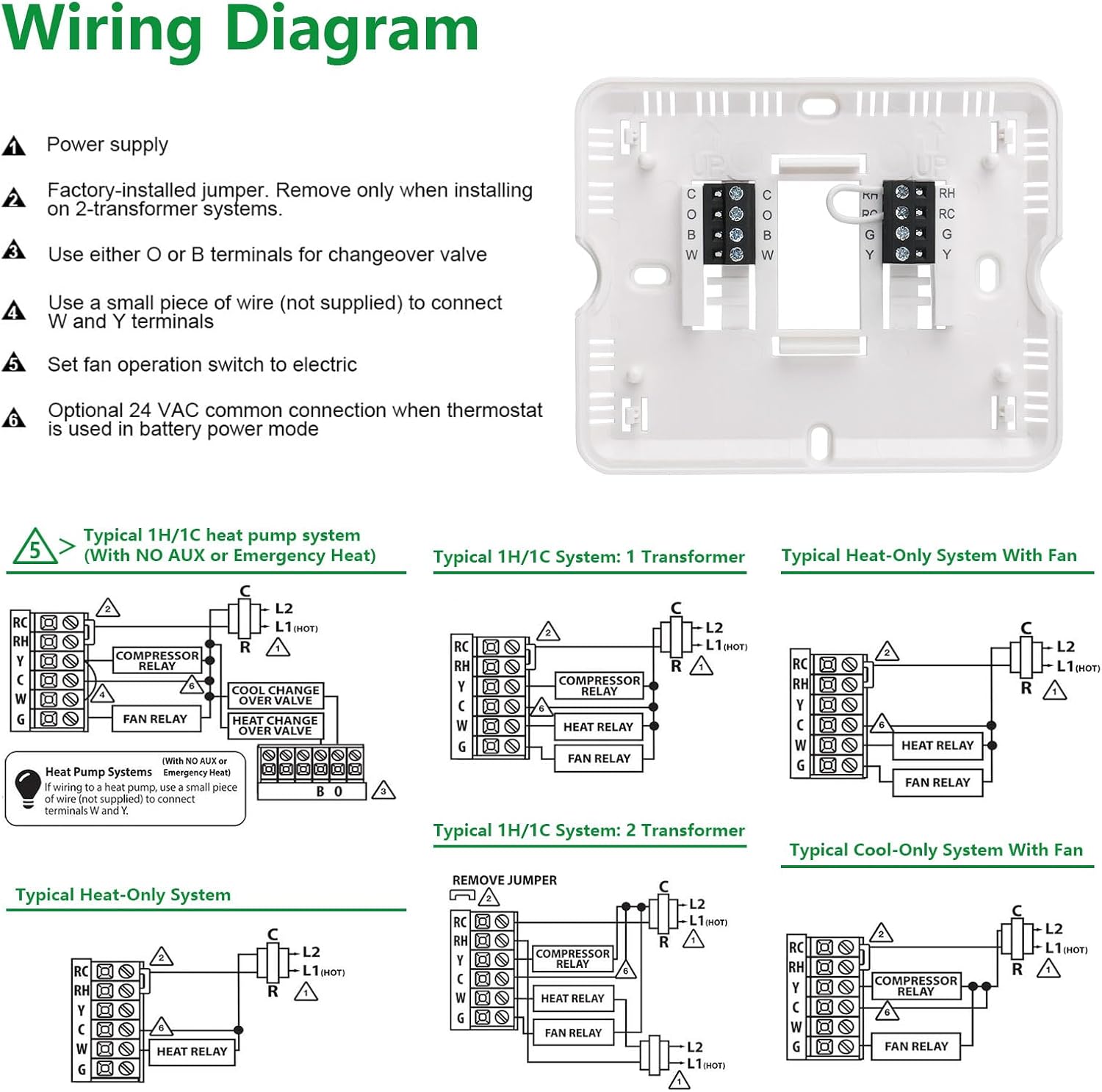 - Single Stage 1 Heat/1 Cool: Work with single stage heating, cooling and heat pump (without aux) systems. Does not work with multi-stage systems, mini split systems, heat pump (with aux or emergency heat) systems and 12v rv thermostats.