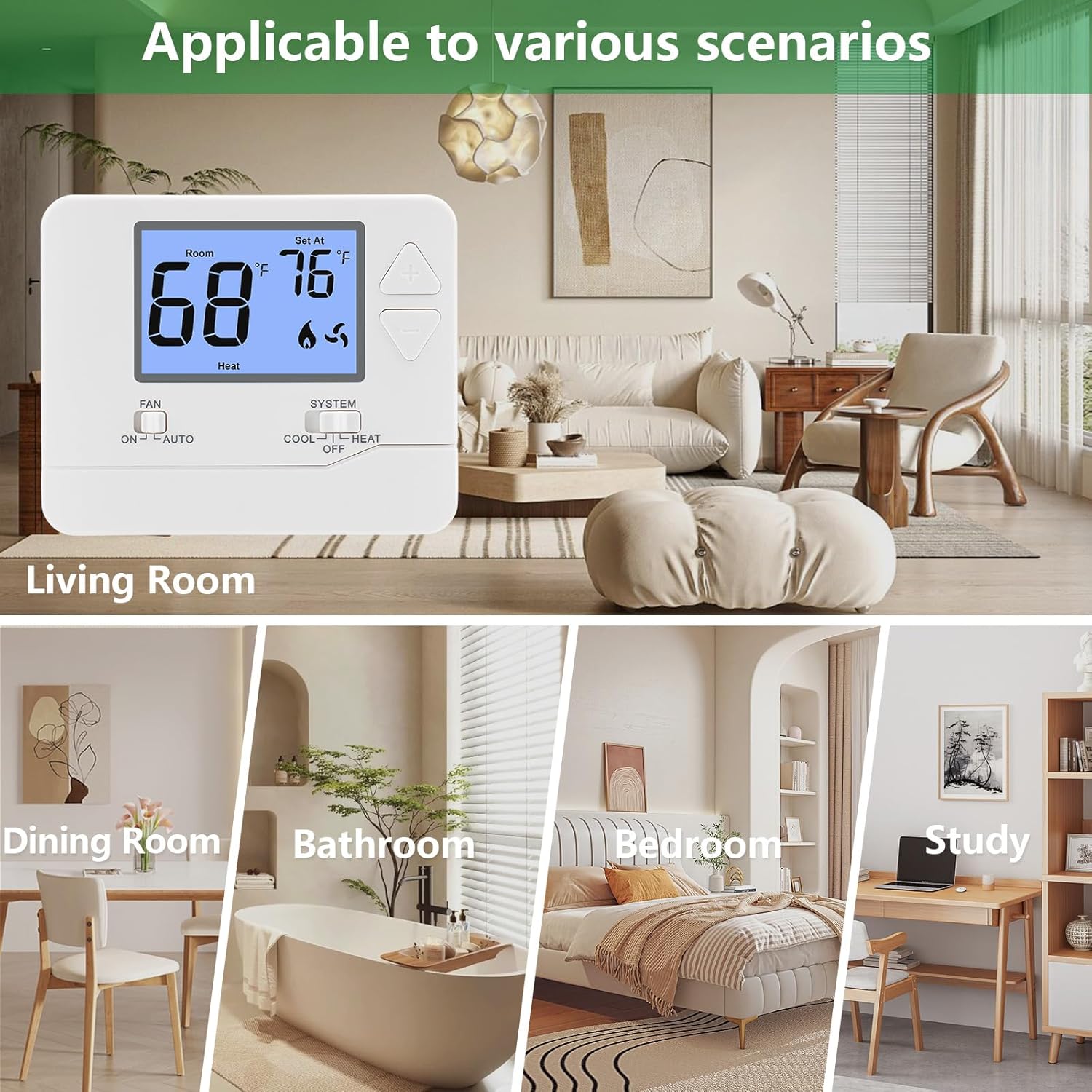 Non-Programmable Digital Thermostat for Home, up to 1 Heat/1 Cool with Large LCD Display, Compatible with Single Stage Electrical and Gas/Oil System, White